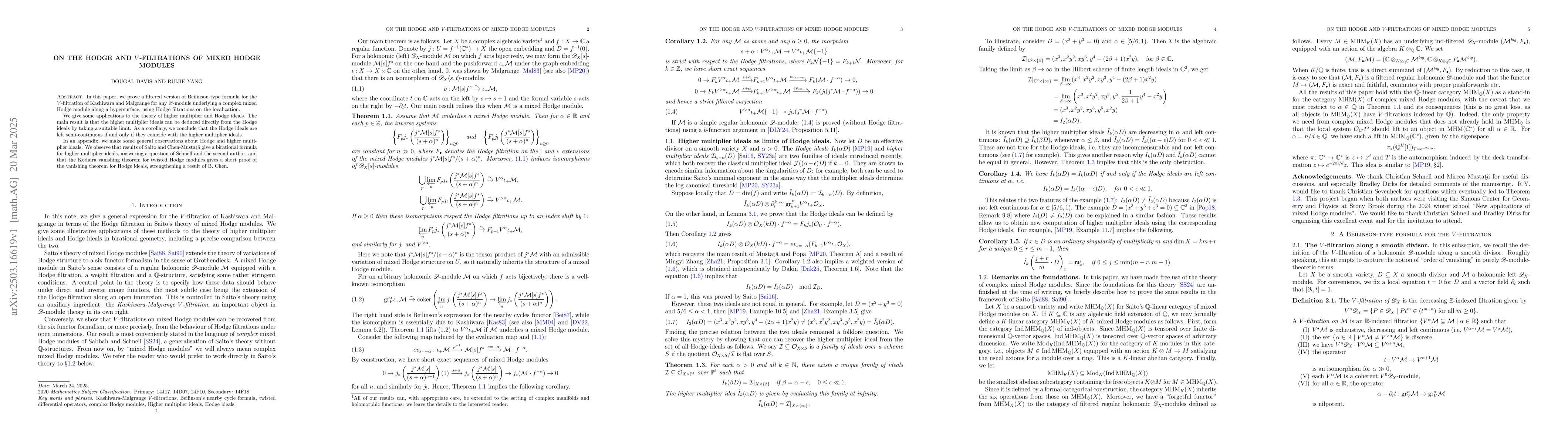 This research contributes to the understanding of mixed Hodge modules, Hodge ideals, and higher multiplier ideals, with implications for algebraic geometry and the theory of D-modules.