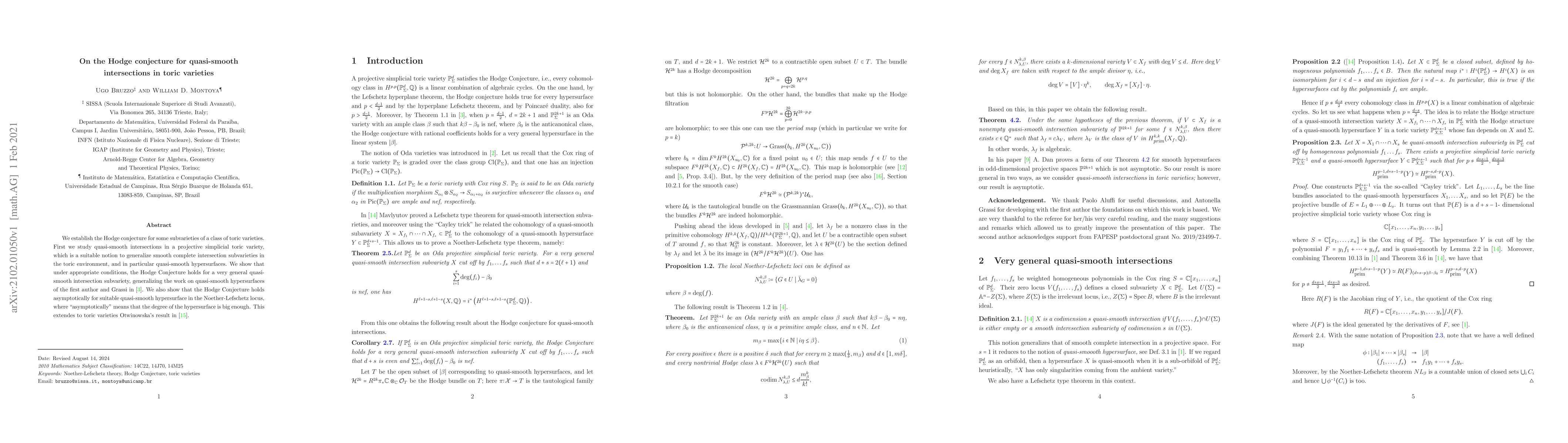The paper establishes the Hodge conjecture for specific subvarieties in toric varieties by studying quasi-smooth intersections in projective simplicial toric varieties, generalizing previous work on quasi-smooth hypersurfaces.