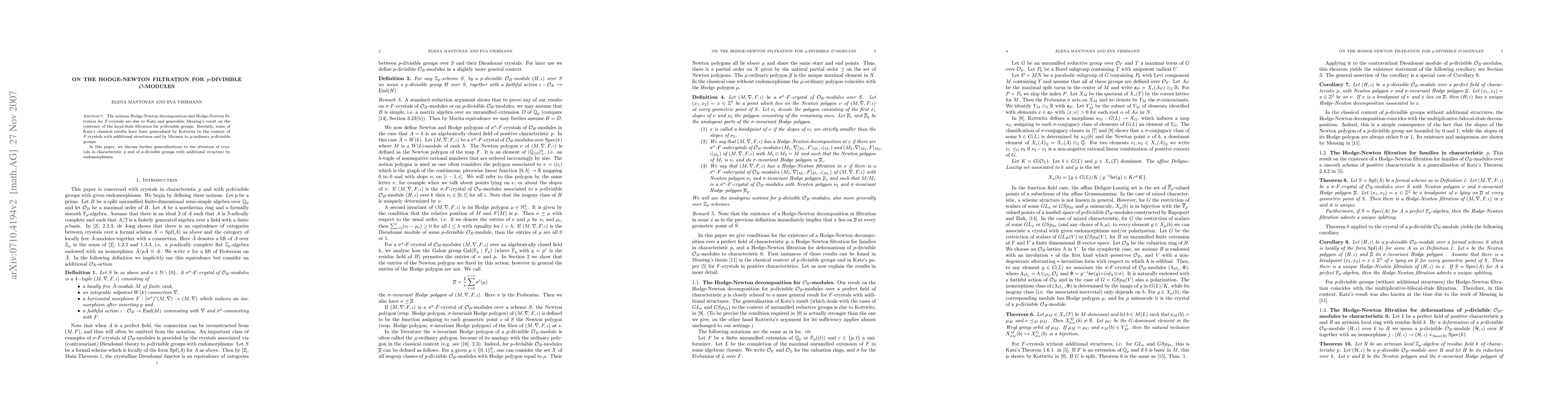This paper extends the Hodge-Newton filtration concepts from F-crystals to p-divisible groups with additional structures, building on the generalizations by Kottwitz and Moonen, and explores their implications for crystals in characteristic p.