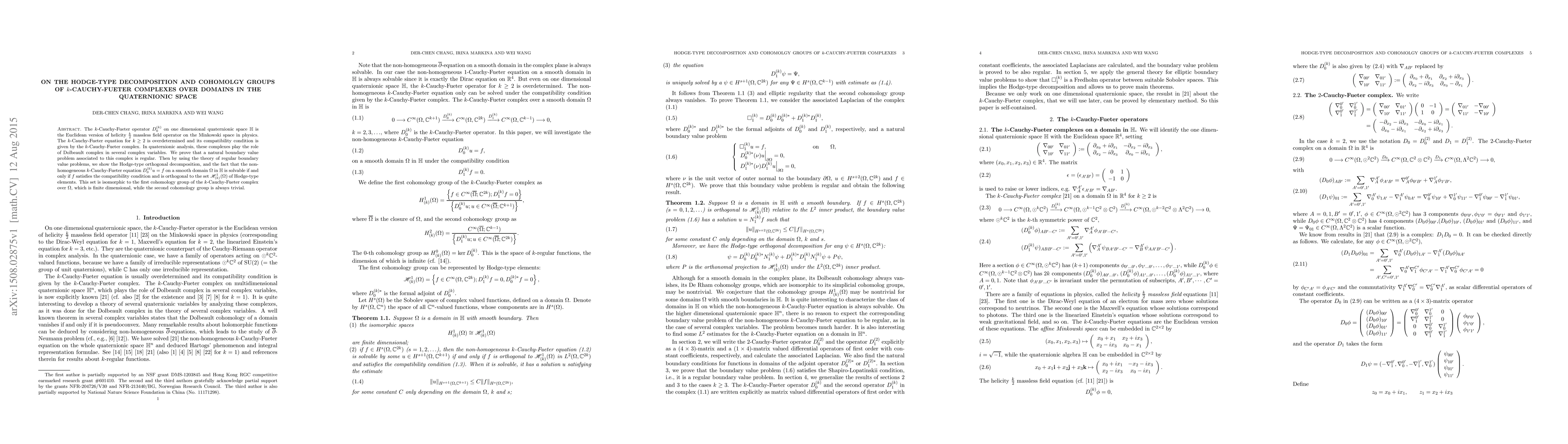 This paper investigates the $k$-Cauchy-Fueter complexes in quaternionic analysis, proving the regularity of associated boundary value problems and establishing a Hodge-type decomposition. It demonstrates that the $k$-Cauchy-Fueter equation is solvable if the input function satisfies compatibility conditions and is orthogonal to a specific set of elements, which corresponds to the first cohomology group.