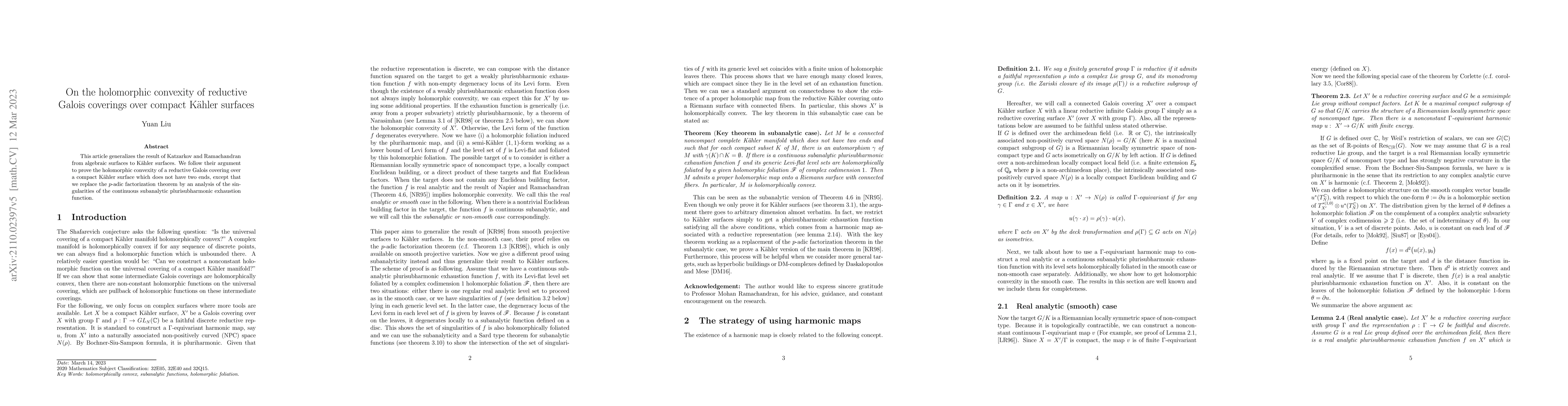 This paper extends the holomorphic convexity result from algebraic surfaces to compact Kähler surfaces, proving the holomorphic convexity of reductive Galois coverings using a method that analyzes singularities of a continuous subanalytic plurisubharmonic exhaustion function instead of the $p$-adic factorization theorem.