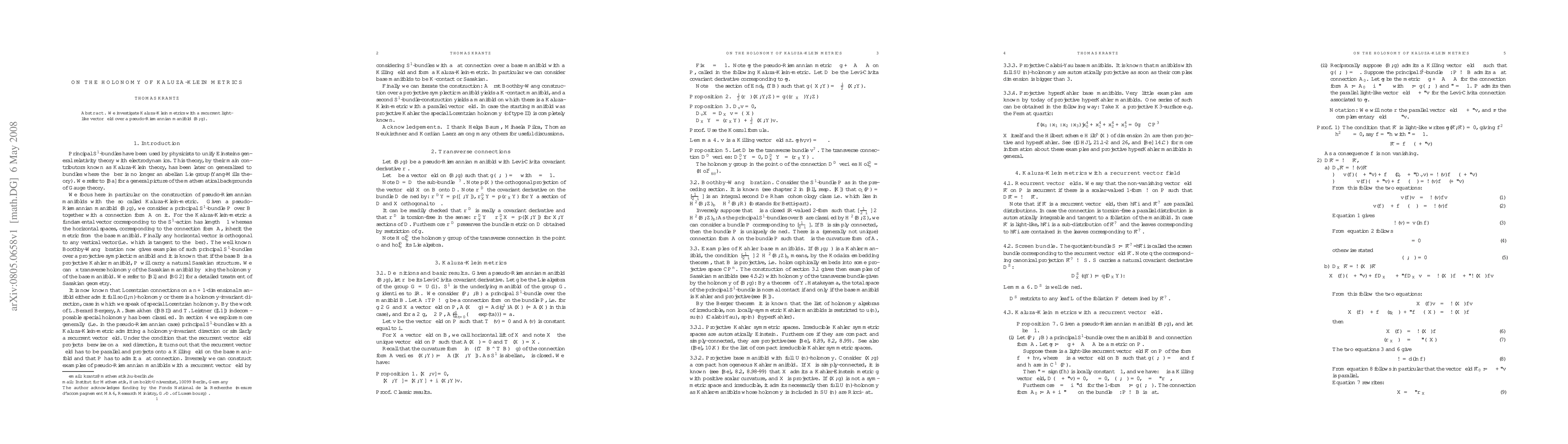 Summary: This paper explores the holonomy properties of Kaluza-Klein metrics featuring a recurrent light-like vector field on a pseudo-Riemannian manifold, aiming to understand the geometric implications of such configurations.