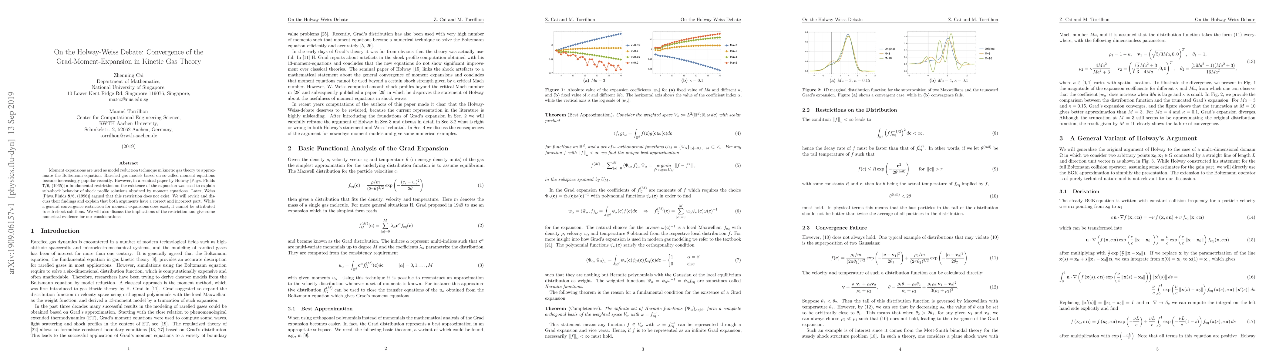 This paper revisits the debate between Holway and Weiss regarding moment expansion convergence in kinetic gas theory. It concludes that while a convergence restriction for moment expansions exists, it isn't linked to sub-shock solutions as Holway suggested, nor does it completely not exist as Weiss argued. The paper provides numerical evidence and discusses implications of this restriction.