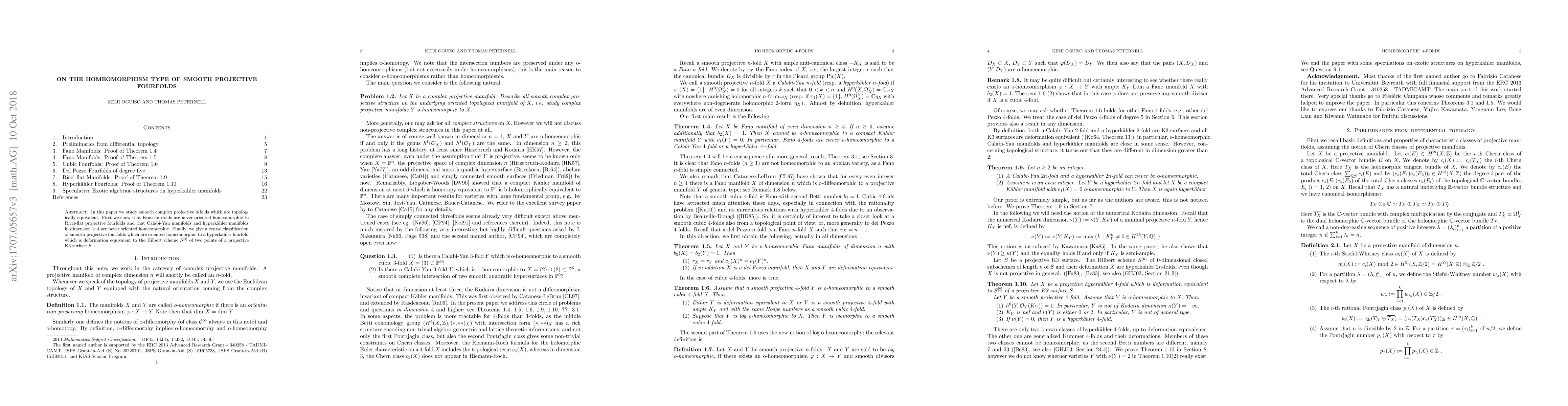 This paper explores the topological equivalence of smooth complex projective fourfolds, demonstrating that Fano fourfolds are never homeomorphic to Ricci-flat projective fourfolds, and presenting a classification of fourfolds homeomorphic to a hyperkähler fourfold deformation equivalent to the Hilbert scheme of two points on a K3 surface.