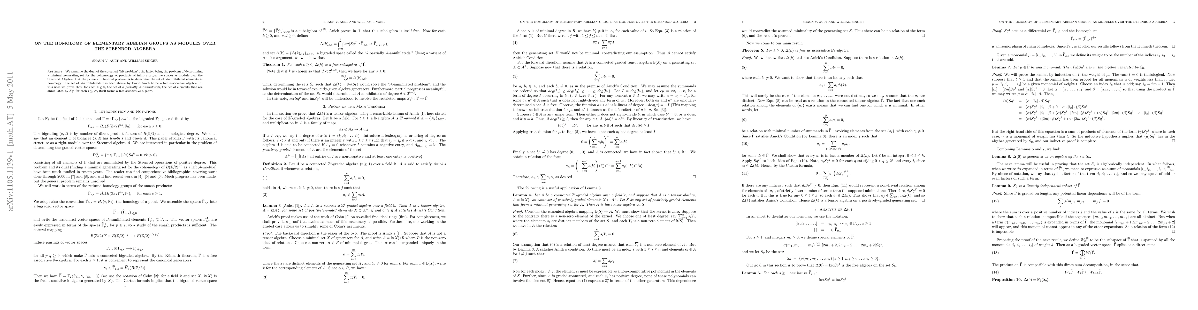 Researchers prove that sets of elements partially annihilated by Steenrod Algebra operations form free associative algebras, resolving the dual problem to the hit problem in homology theory.