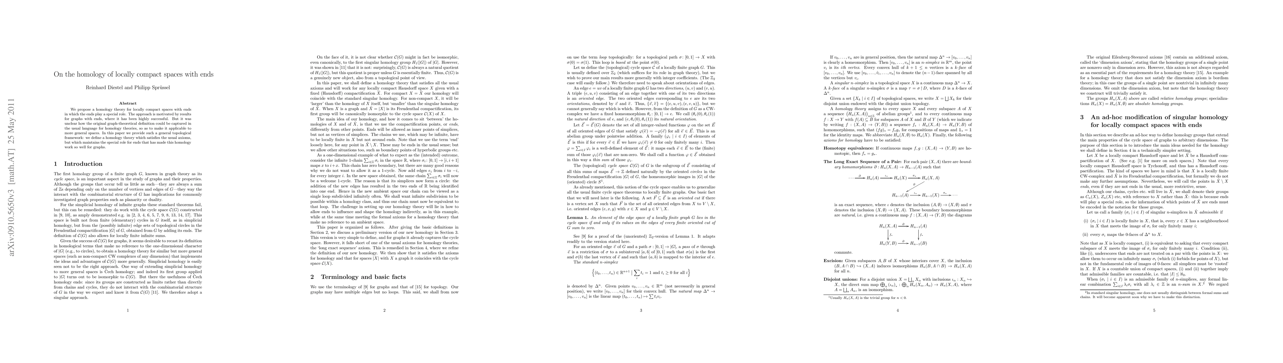 This paper introduces a new homology theory for locally compact spaces with ends, inspired by successful graph theory approaches. It provides a general topological framework that maintains the special role of ends, ensuring the theory satisfies standard axioms while extending its applicability beyond graphs.