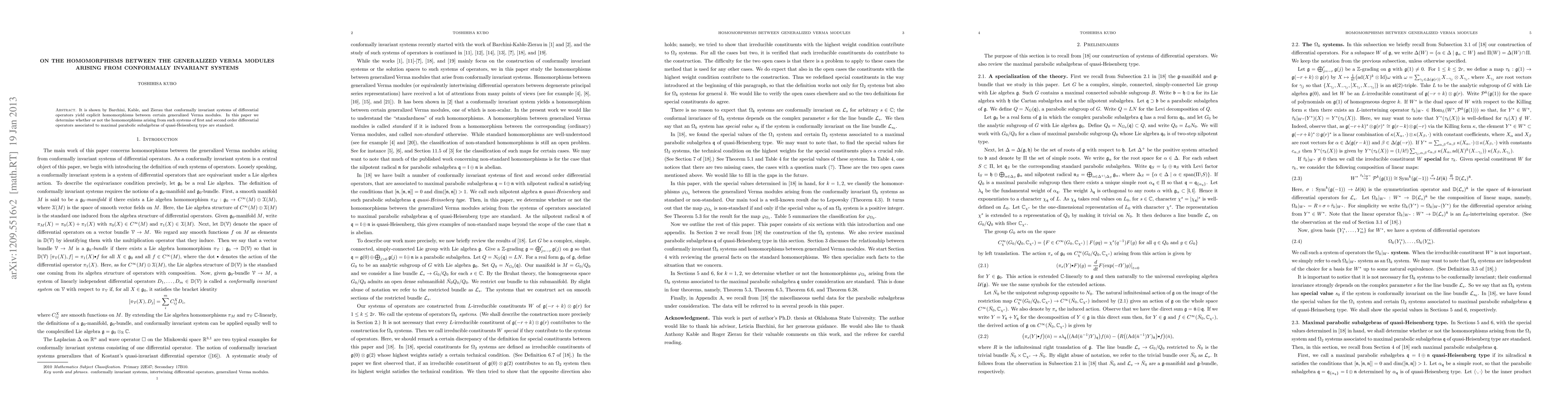 This paper investigates homomorphisms between generalized Verma modules derived from conformally invariant systems of differential operators. It focuses on determining if these homomorphisms, originating from first and second-order systems tied to quasi-Heisenberg maximal parabolic subalgebras, are standard.