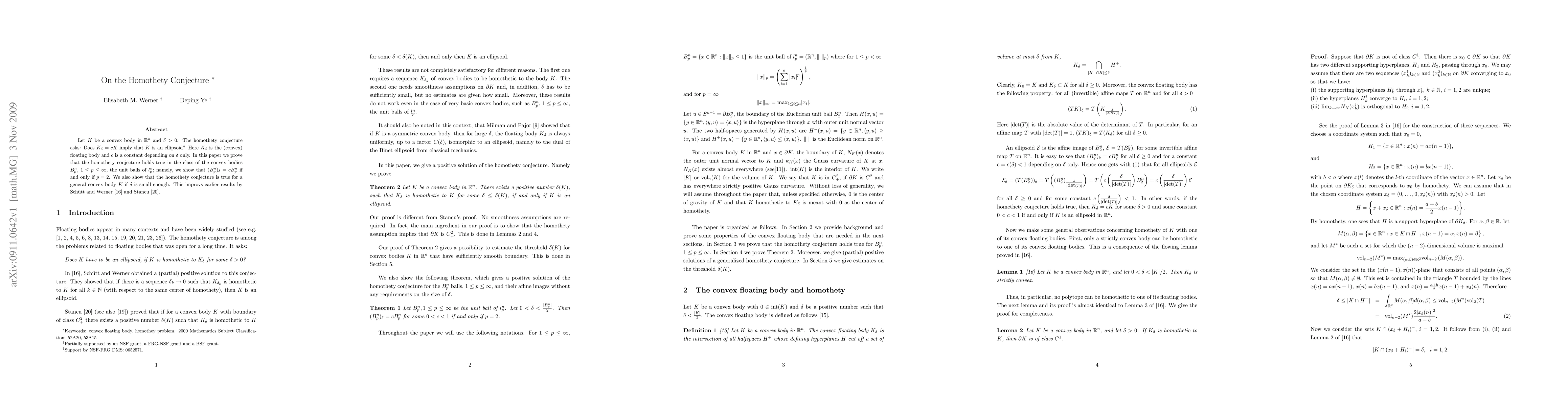 This paper proves the homothety conjecture for convex bodies $B^n_p$ in $\bbR^n$, showing that $(B^n_p)_{\d} = c B^n_p$ holds if and only if $p=2$. It also establishes the conjecture for general convex bodies when $\d$ is sufficiently small.