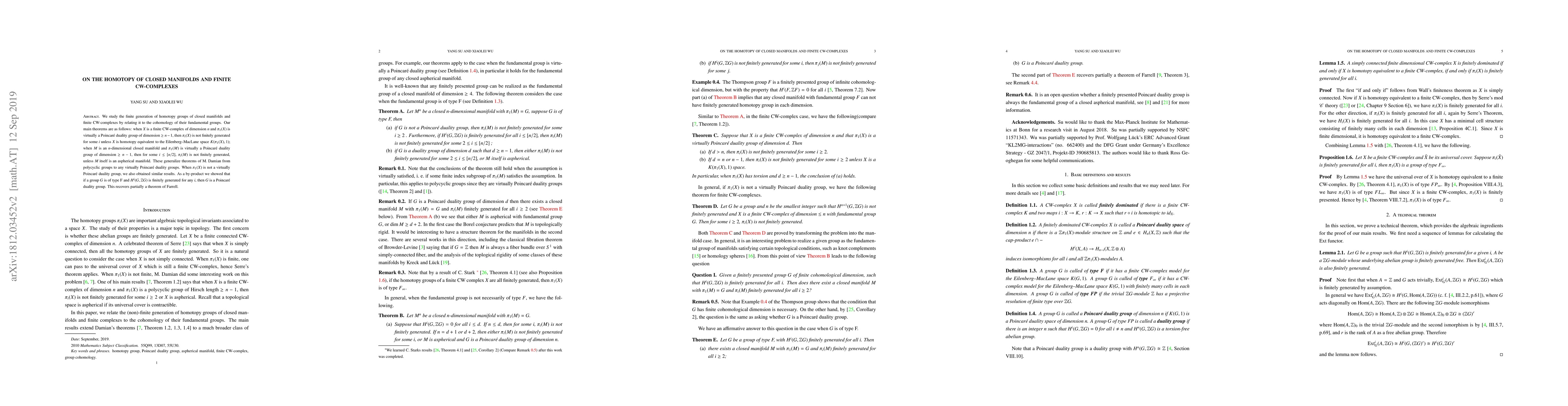 Researchers prove that finitely generated homotopy groups of closed manifolds and finite CW-complexes depend on the cohomology of their fundamental groups, with implications for Poincaré duality groups and the study of infinite groups.
