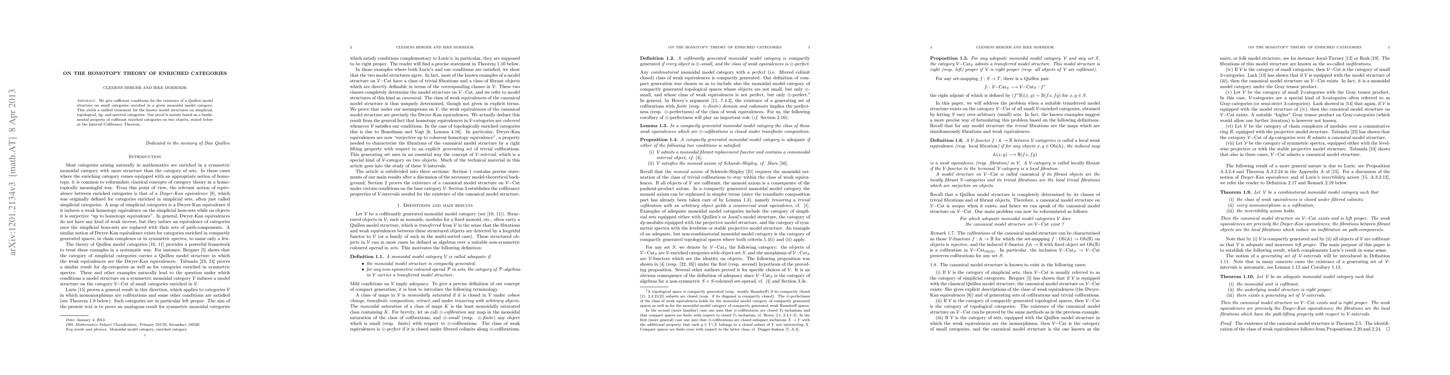 We give sufficient conditions for the existence of a Quillen model structure on small categories enriched in a given monoidal model category. This yields a unified treatment for the known model structures on simplicial, topological, dg- and spectral categories. Our proof is mainly based on a fundamental property of cofibrant enriched categories on two objects, stated below as the Interval Cofibrancy Theorem.