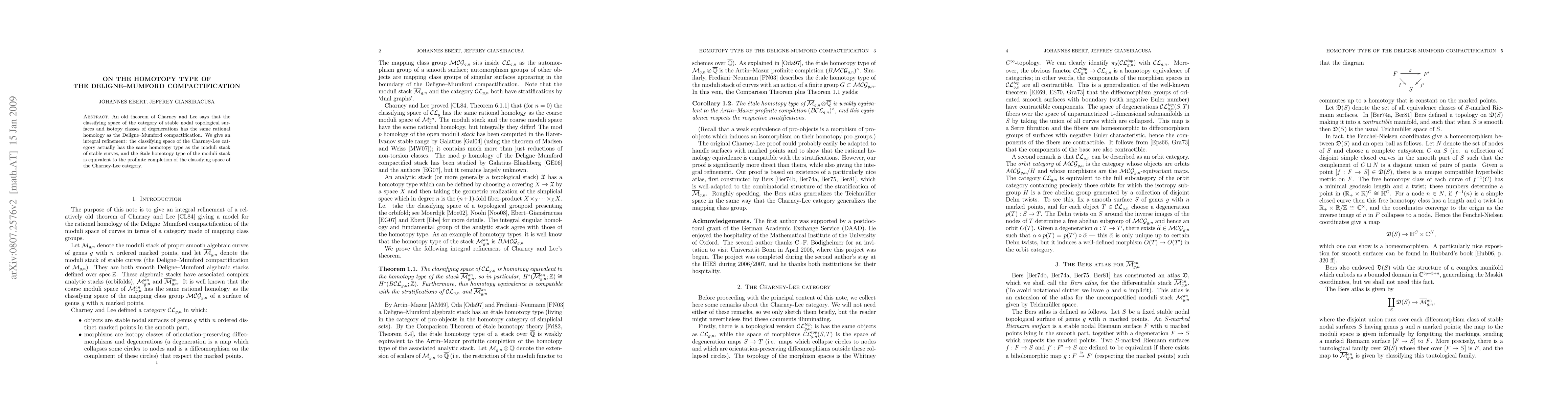 An old theorem of Charney and Lee says that the classifying space of the category of stable nodal topological surfaces and isotopy classes of degenerations has the same rational homology as the Deligne-Mumford compactification. We give an integral refinement: the classifying space of the Charney-Lee category actually has the same homotopy type as the moduli stack of stable curves, and the etale homotopy type of the moduli stack is equivalent to the profinite completion of the classifying space of the Charney-Lee category.