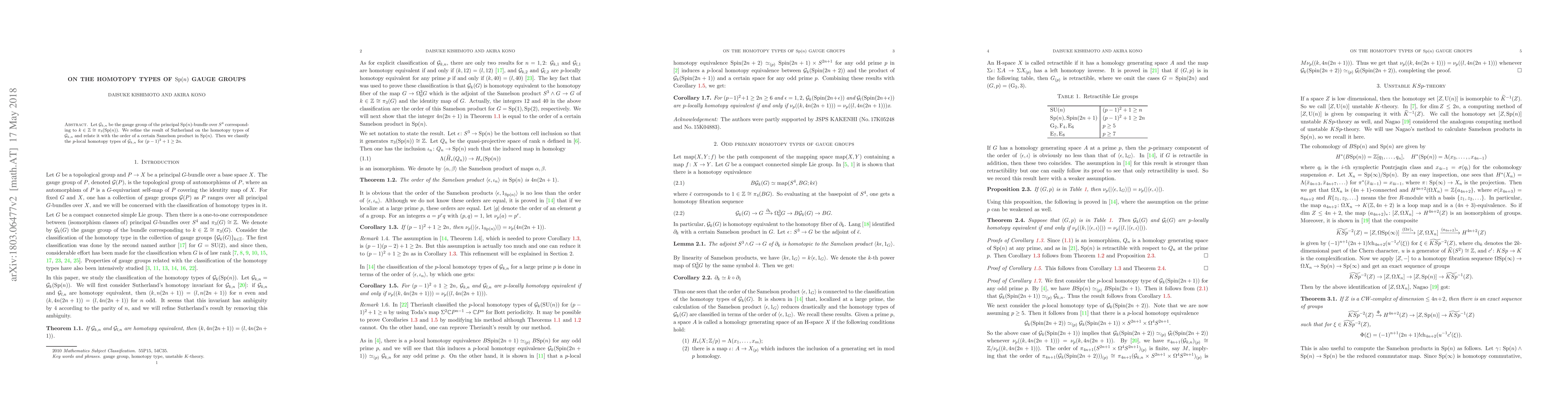This paper refines Sutherland's results on the homotopy types of $\mathrm{Sp}(n)$ gauge groups $\mathcal{G}_{k,n}$ over $S^4$ and connects them to the order of a Samelson product in $\mathrm{Sp}(n)$. It also classifies the $p$-local homotopy types of $\mathcal{G}_{k,n}$ under specific conditions.