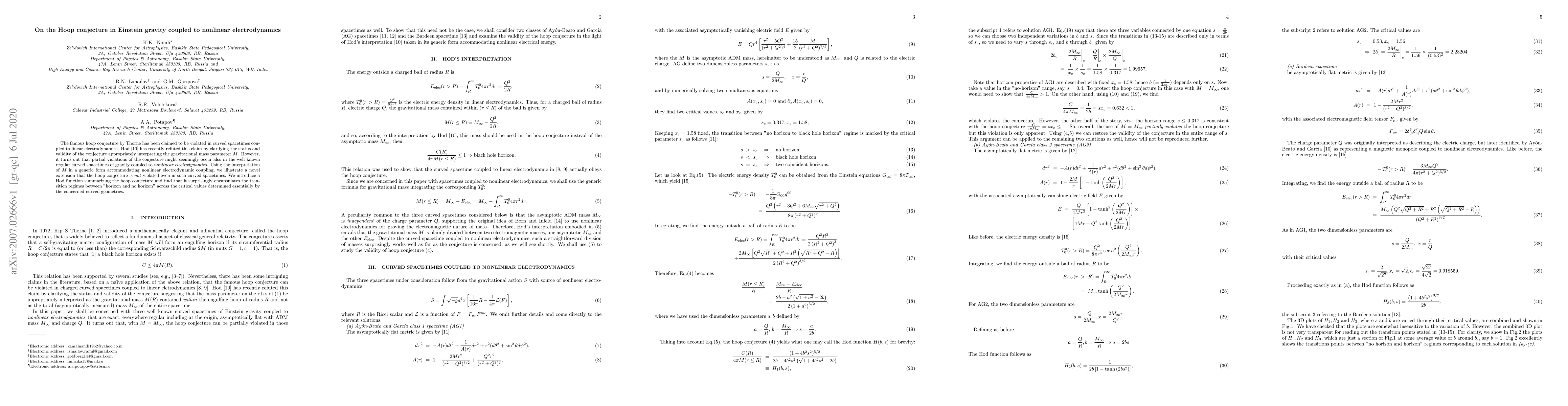 This paper investigates the hoop conjecture in the context of Einstein gravity coupled to nonlinear electrodynamics, showing that despite previous claims, the conjecture remains valid even in such curved spacetimes. It introduces a Hod function to encapsulate the transition regimes between the presence and absence of horizons, determined by the specific geometries involved.