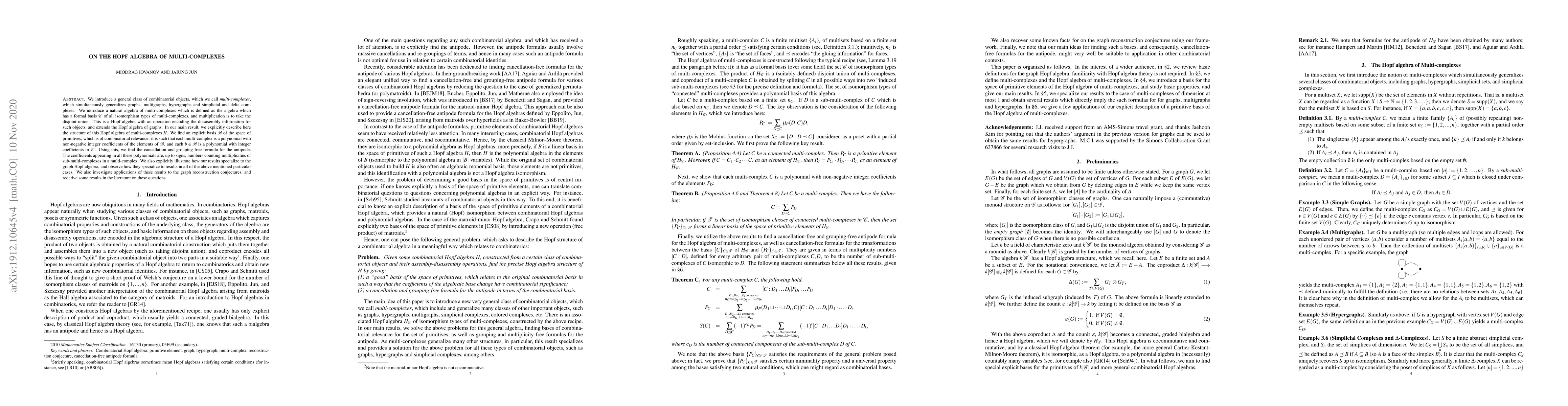 We introduce a general class of combinatorial objects, which we call \emph{multi-complexes}, which simultaneously generalizes graphs, multigraphs, hypergraphs and simplicial and delta complexes. We introduce a natural algebra of multi-complexes which is defined as the algebra which has a formal basis $\mathcal{C}$ of all isomorphism types of multi-complexes, and multiplication is to take the disjoint union. This is a Hopf algebra with an operation encoding the dissasembly information for such objects, and extends the Hopf algebra of graphs. In our main result, we explicitly describe here the structure of this Hopf algebra of multi-complexes $H$. We find an explicit basis $\mathcal{B}$ of the space of primitives, which is of combinatorial relevance: it is such that each multi-complex is a polynomial with non-negative integer coefficients of the elements of $\mathcal{B}$, and each $b\in\mathcal{B}$ is a polynomial with integer coefficients in $\mathcal{C}$. Using this, we find the cancellation and grouping free formula for the antipode. The coefficients appearing in all these polynomials are, up to signs, numbers counting multiplicities of sub-multi-complexes in a multi-complex. We also explicitly illustrate how our results specialize to the graph Hopf algebra, and observe how they specialize to results in all of the above mentioned particular cases. We also investigate applications of these results to the graph reconstruction conjectures, and rederive some results in the literature on these questions.