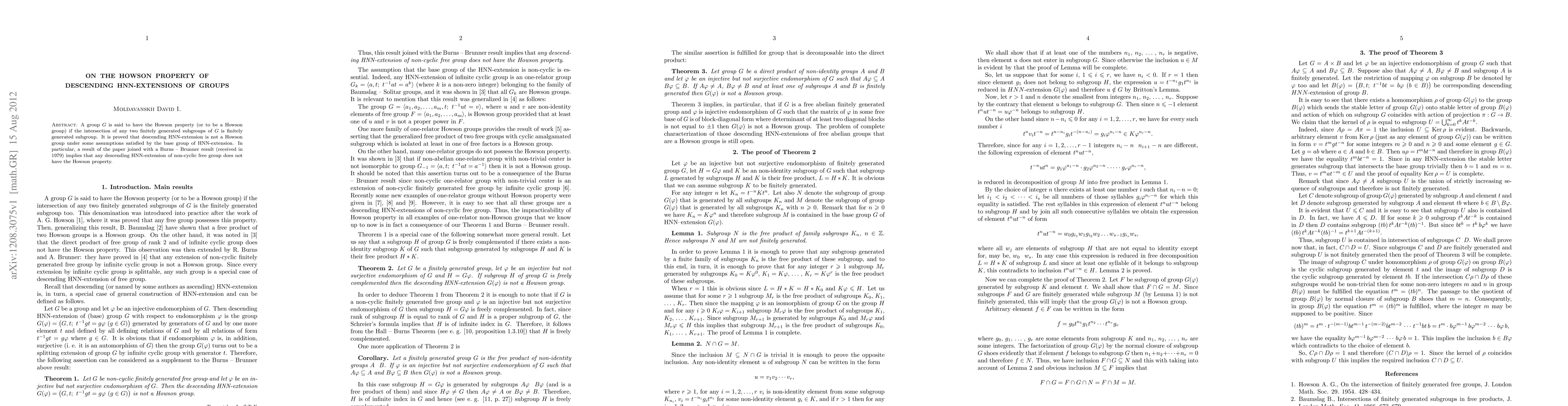 A group $G$ is said to have the Howson property (or to be a Howson group) if the intersection of any two finitely generated subgroups of $G$ is finitely generated subgroup. It is proved that descending HNN-extension is not a Howson group under some assumptions satisfied by the base group of HNN-extension. In particular, a result of the paper joined with a Burns - Brunner result (received in 1979) implies that any descending HNN-extension of non-cyclic free group does not have the Howson property.