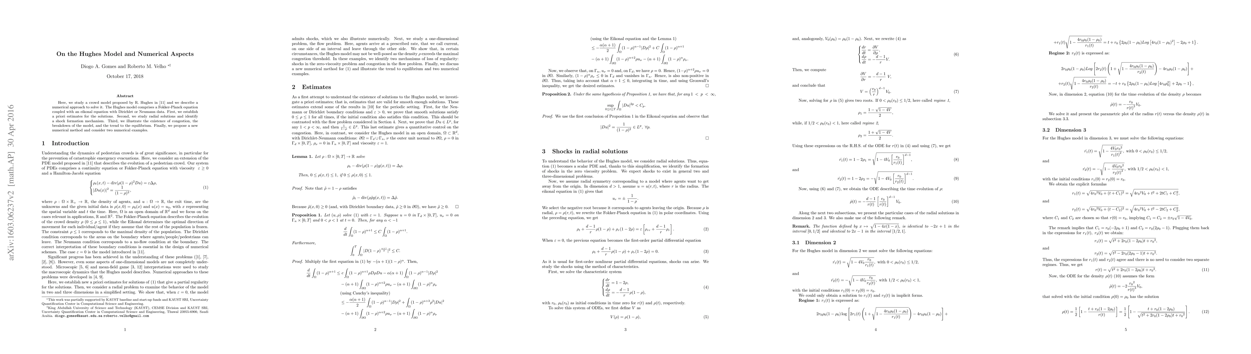 A research paper studies the Hughes crowd model, establishing a priori estimates for solutions and identifying shock formation mechanisms, congestion, and breakdowns. It also proposes a new numerical method to solve the model numerically.
