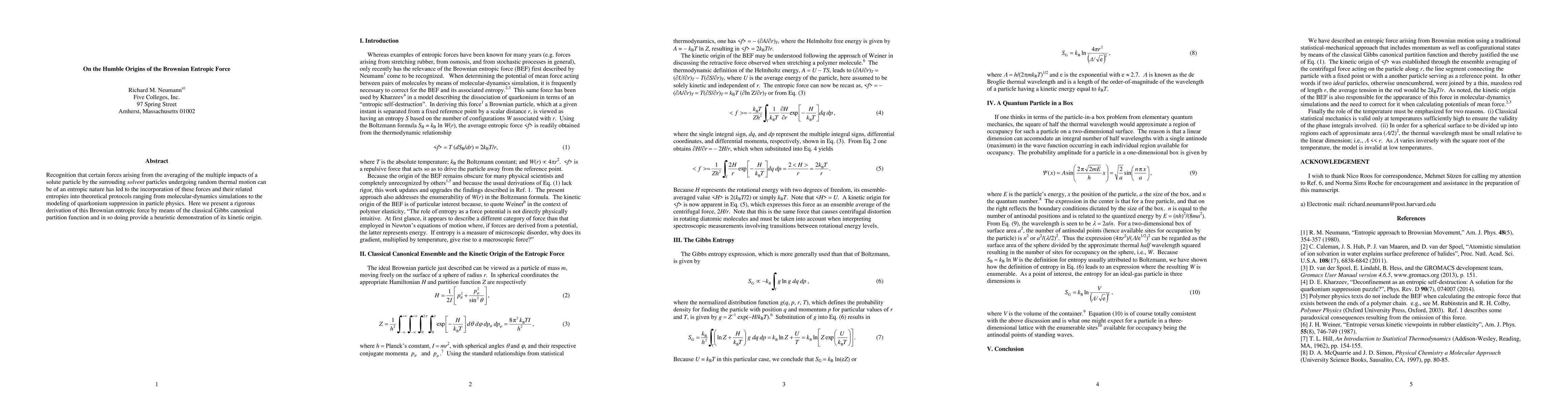 This research provides a rigorous derivation of the Brownian entropic force and its kinetic origin, with implications for molecular-dynamics simulations and quarkonium suppression.