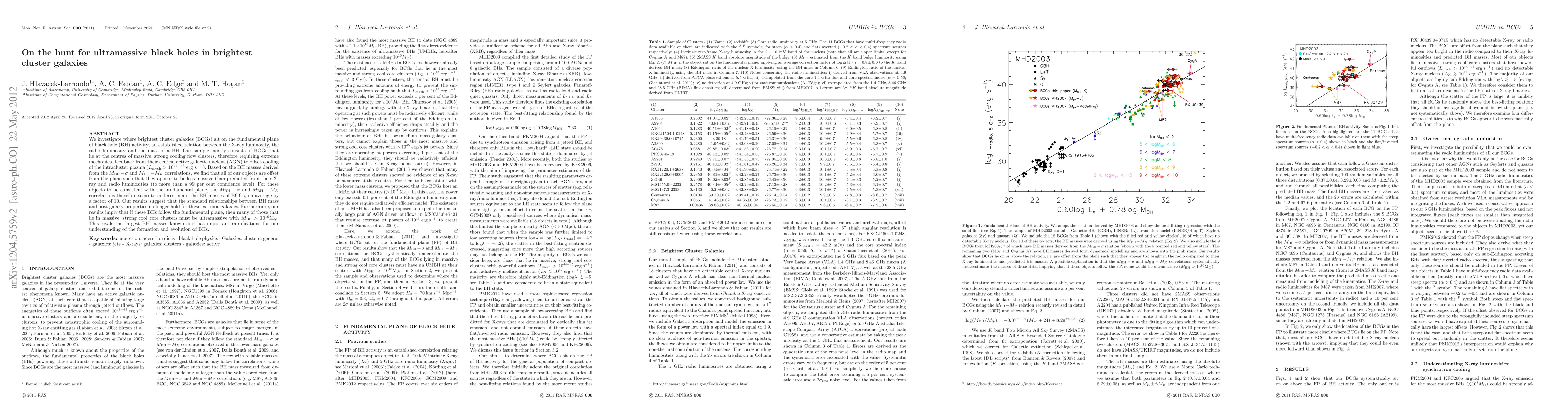 This research finds that brightest cluster galaxies (BCGs) deviate from the established black hole (BH) activity fundamental plane, suggesting their BH masses are underestimated by factors like 10 using standard correlations. This implies many BCGs could host ultramassive black holes (>10^10M_sun), challenging current understanding of BH formation and evolution.