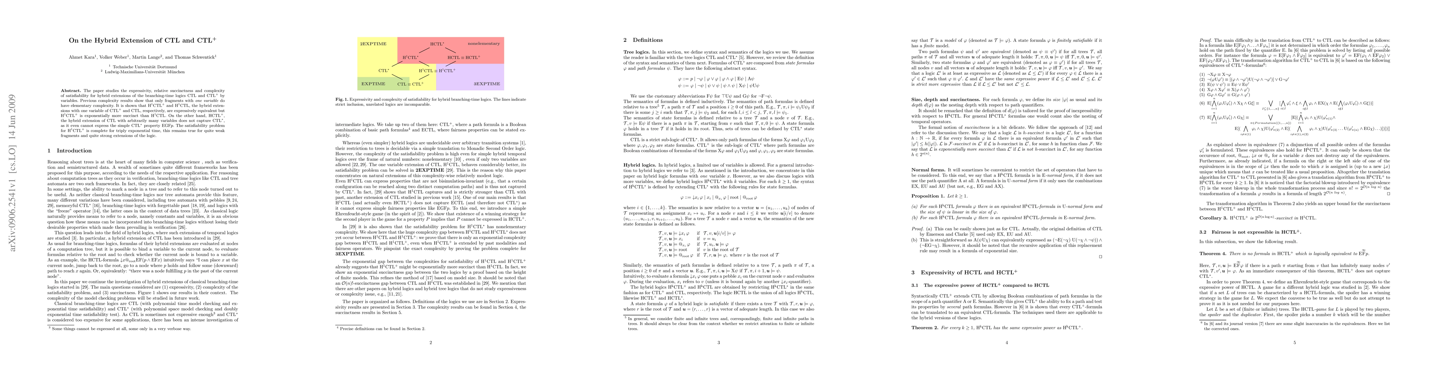 The paper investigates hybrid extensions of CTL and CTL+ with one variable, showing they are expressively equivalent but H1CTL+ is exponentially more succinct than H1CTL. HCTL+ with multiple variables fails to capture CTL* and has triply exponential time complexity for satisfiability.