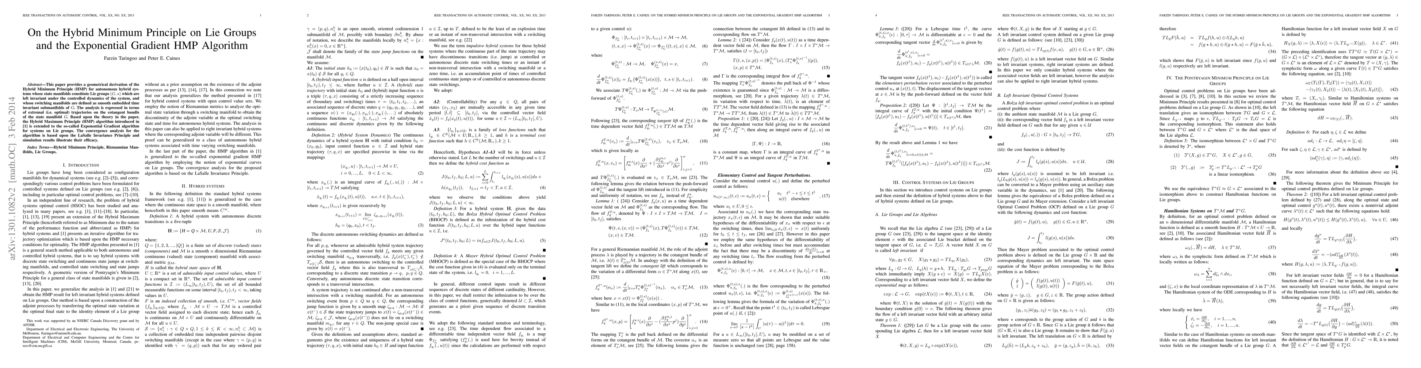 This paper provides a geometrical derivation of the Hybrid Minimum Principle (HMP) for autonomous hybrid systems whose state manifolds constitute Lie groups $(G,\star)$ which are left invariant under the controlled dynamics of the system, and whose switching manifolds are defined as smooth embedded time invariant submanifolds of $G$. The analysis is expressed in terms of extremal (i.e. optimal) trajectories on the cotangent bundle of the state manifold $G$. The Hybrid Maximum Principle (HMP) algorithm introduced in \cite{Shaikh} is extended to the so-called Exponential Gradient algorithm. The convergence analysis for the algorithm is based upon the LaSalle Invariance Principle and simulation results illustrate their efficacy.