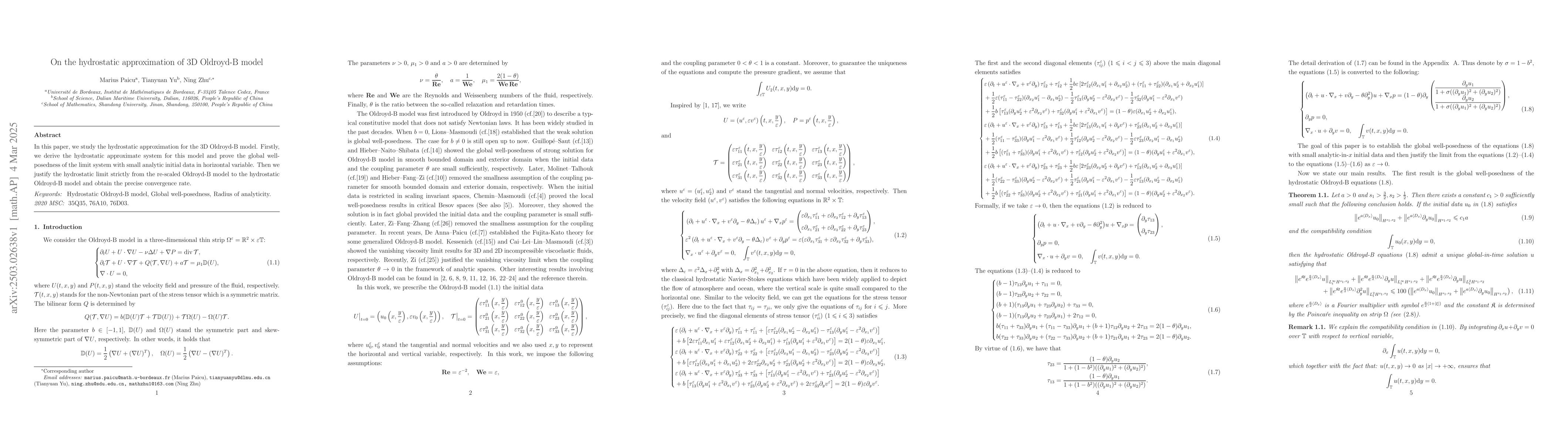 The paper presents a rigorous mathematical proof of hydrostatic limit and convergence rate for the 3D Oldroyd-B model, providing a solid theoretical basis for hydrostatic approximations in fluid dynamics.