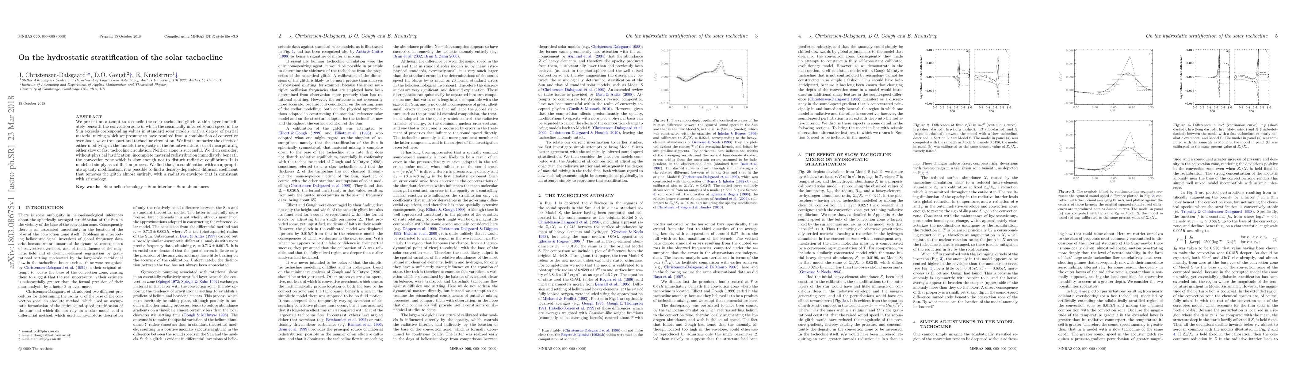 We present an attempt to reconcile the solar tachocline glitch, a thin layer immediately beneath the convection zone in which the seismically inferred sound speed in the Sun exceeds corresponding values in standard solar models, with a degree of partial material mixing which we presume to have resulted from a combination of convective overshoot, wave transport and tachocline circulation. We first summarize the effects of either modifying in the models the opacity in the radiative interior or of incorporating either slow or fast tachocline circulation. Neither alone is successful. We then consider, without physical justification, incomplete material redistribution immediately beneath the convection zone which is slow enough not to disturb radiative equilibrium. It is modelled simply as a diffusion process. We find that, in combination with an appropriate opacity modification, it is possible to find a density-dependent diffusion coefficient that removes the glitch almost entirely, with a radiative envelope that is consistent with seismology.