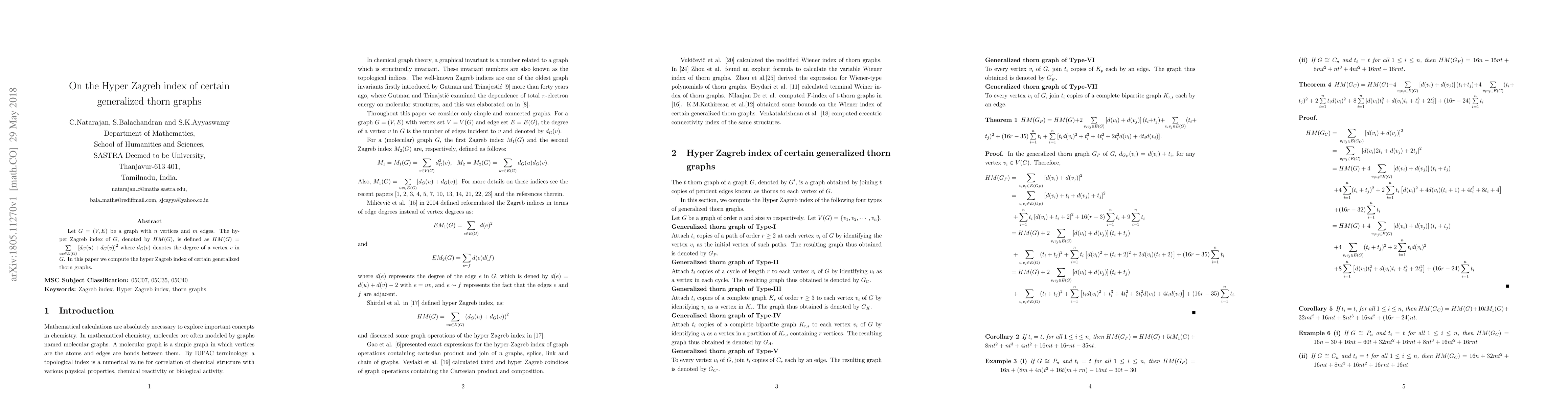 This paper calculates the hyper Zagreb index of certain generalized thorn graphs, a measure that represents how connected vertices are in a graph. The results provide new insights into the properties of these specific graph types.
