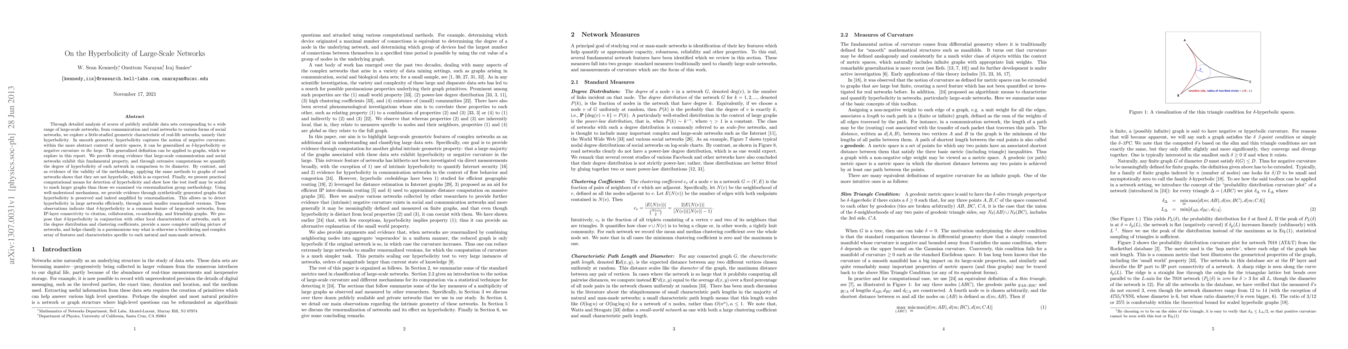 Large-scale networks like communication and social networks exhibit hyperbolicity, a geometric property that captures negative curvature. The study provides evidence of this common feature in these networks and offers practical methods for detecting it.