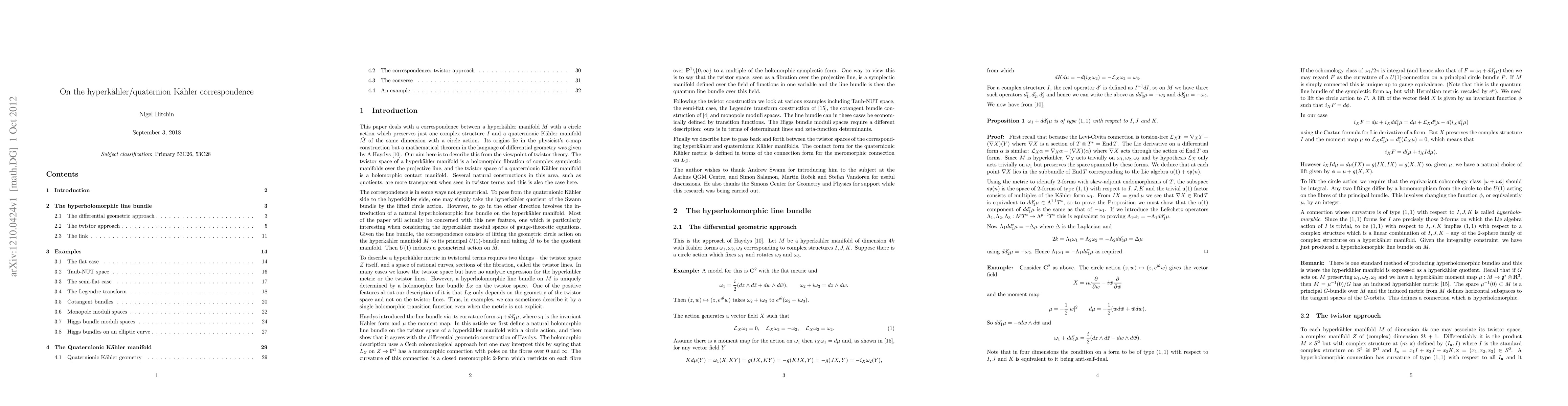 This paper constructs a holomorphic line bundle on twistor space corresponding to a hyperkaehler manifold with a circle action. It demonstrates the bundle’s meromorphic connection and presents examples like monopole and Higgs bundle moduli spaces, ultimately establishing a twistor version of the hyperkaehler/quaternionic Kaehler correspondence.