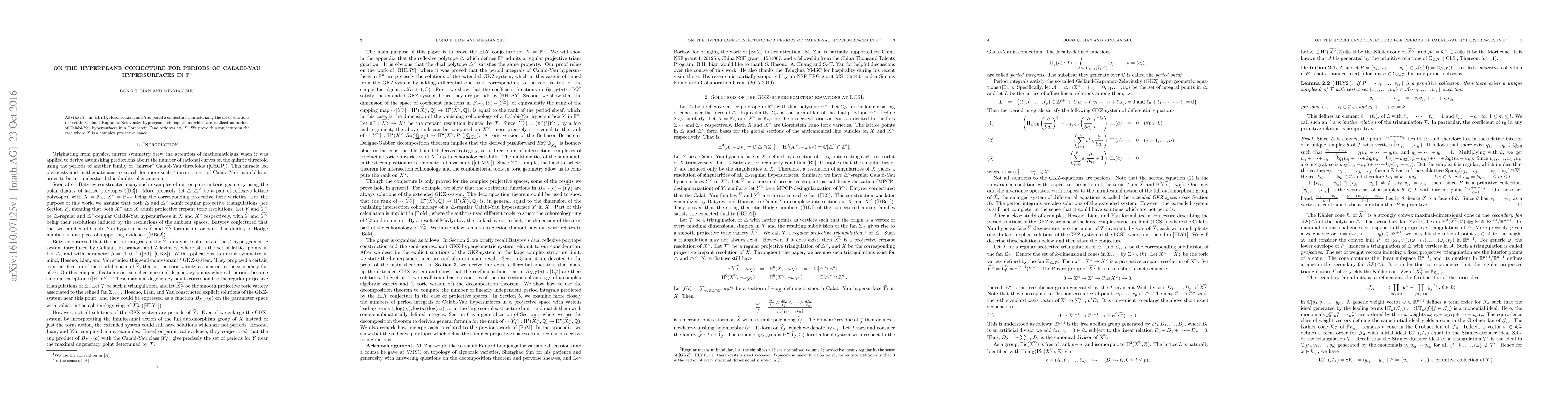 Summary: Hosono, Lian, and Yau's conjecture on the periods of Calabi-Yau hypersurfaces in $\mathbb P^n$ is proven for the case where $X$ is a complex projective space, addressing the solutions to Gelfand-Kapranov-Zelevinsky hypergeometric equations.