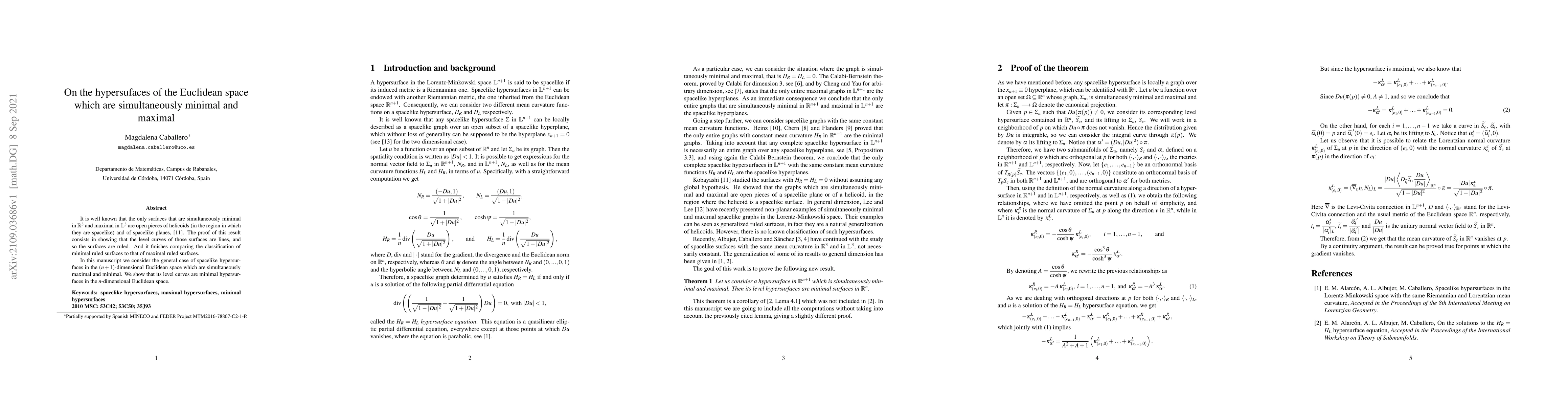 It is well known that the only surfaces that are simultaneously minimal in $\mathbb{R}^3$ and maximal in $\mathbb{L}^3$ are open pieces of helicoids (in the region in which they are spacelike) and of spacelike planes (O. Kobayashi 1983). The proof of this result consists in showing that the level curves of those surfaces are lines, and so the surfaces are ruled. And it finishes comparing the classification of minimal ruled surfaces to that of maximal ruled surfaces. In this manuscript we consider the general case of spacelike hypersurfaces in the $(n+1)$-dimensional Euclidean space which are simultaneously maximal and minimal. We show that its level curves are minimal hypersurfaces in the $n$-dimensional Euclidean space.