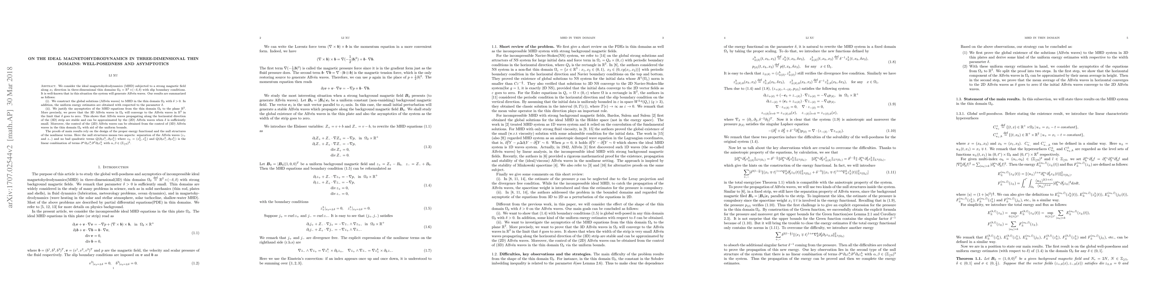 This paper investigates the ideal magnetohydrodynamics (MHD) in three-dimensional thin domains, focusing on Alfvén waves under strong magnetic fields. The authors construct global solutions and prove uniform energy estimates for the MHD system in these thin domains, and demonstrate that 3D Alfvén waves converge to 2D Alfvén waves as the domain thickness approaches zero.