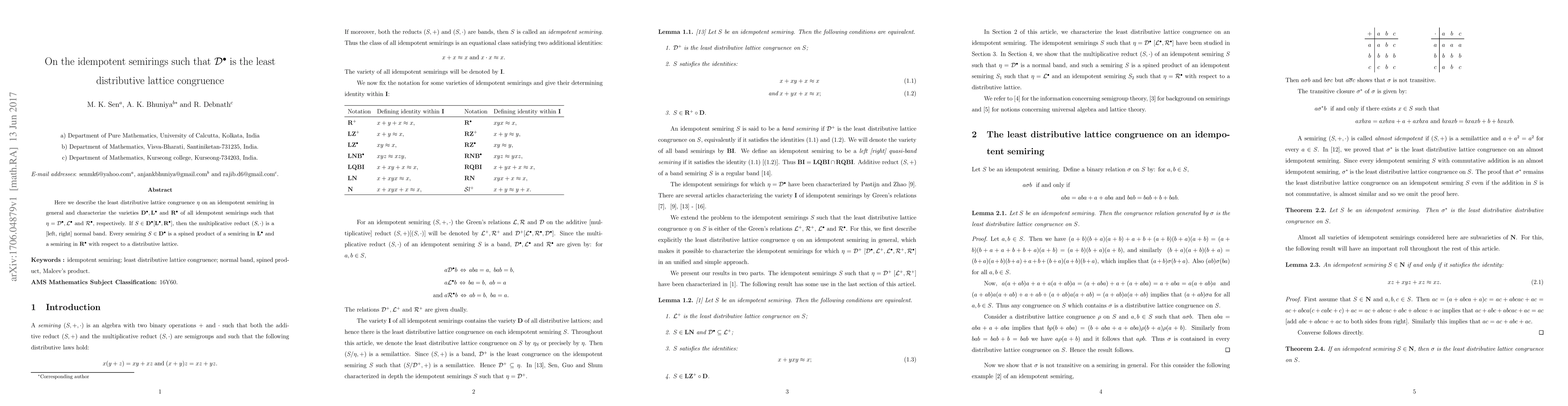 This paper explores the least distributive lattice congruence on idempotent semirings and characterizes specific varieties where this congruence matches certain structures. It also demonstrates that semirings in these varieties can be decomposed into spined products involving normal bands.