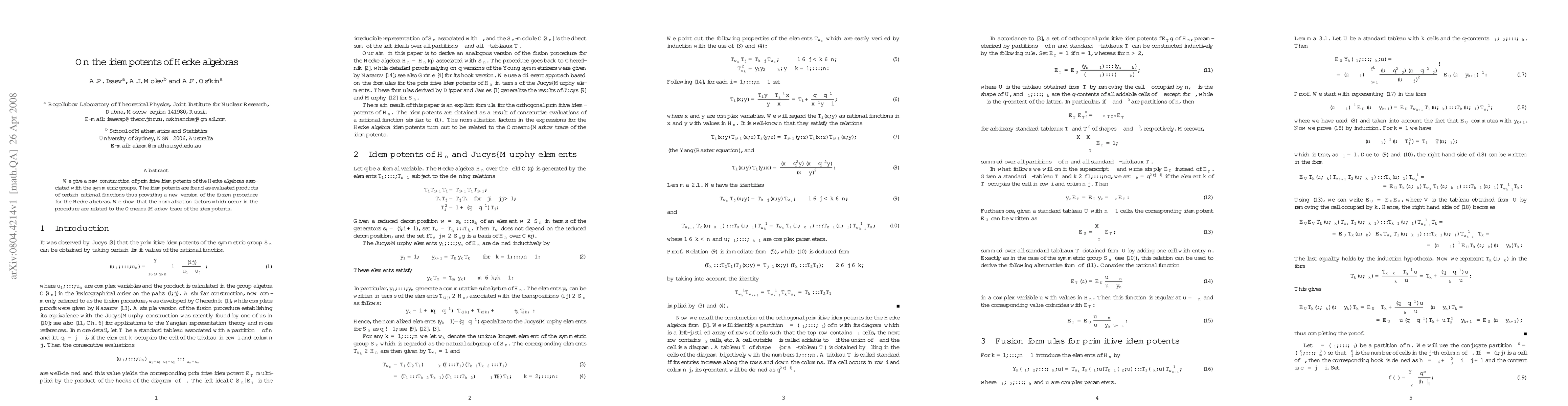 Summary: This paper presents a novel construction of primitive idempotents in Hecke algebras linked to symmetric groups, using evaluated products of rational functions, and demonstrates a connection between the normalization factors and the Ocneanu-Markov trace.