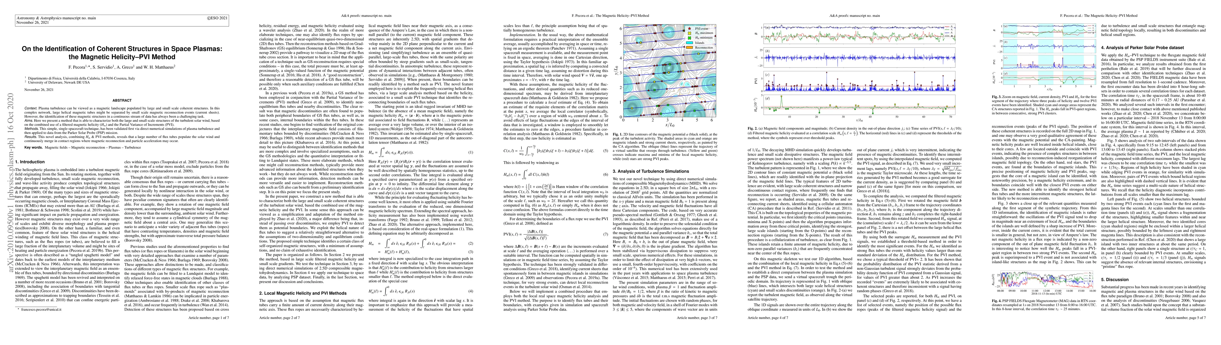 This paper introduces a method combining filtered magnetic helicity and Partial Variance of Increments to identify coherent structures in space plasmas, validated through simulations and applied to Parker Solar Probe data, revealing numerous flux tubes merging in regions of magnetic reconnection.