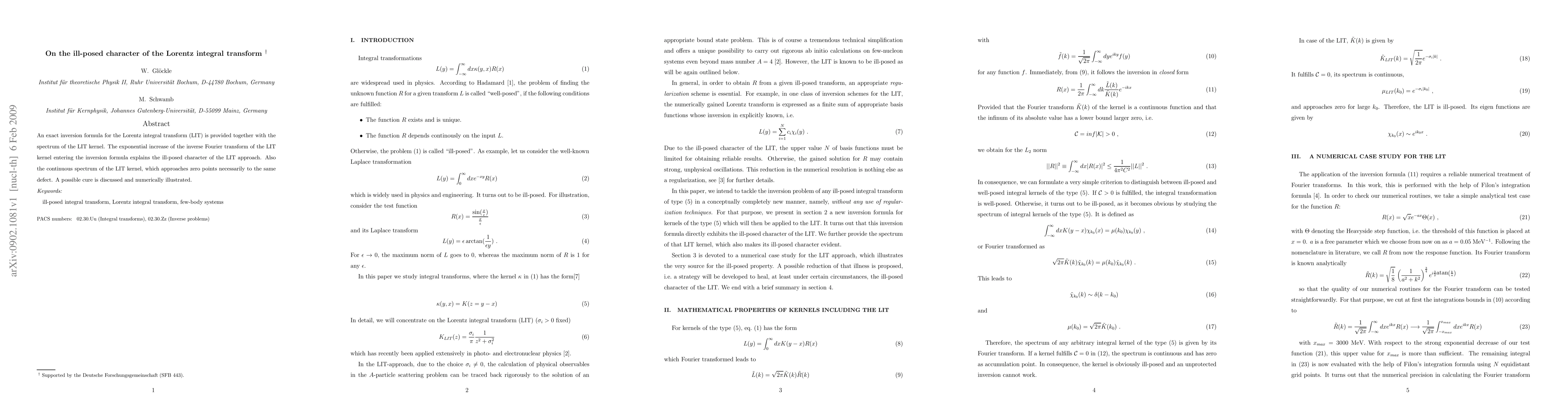 An exact inversion formula for the Lorentz integral transform (LIT) is provided together with the spectrum of the LIT kernel. The exponential increase of the inverse Fourier transform of the LIT kernel entering the inversion formula explains the ill-posed character of the LIT approach. Also the continuous spectrum of the LIT kernel, which approaches zero points necessarily to the same defect. A possible cure is discussed and numerically illustrated.
