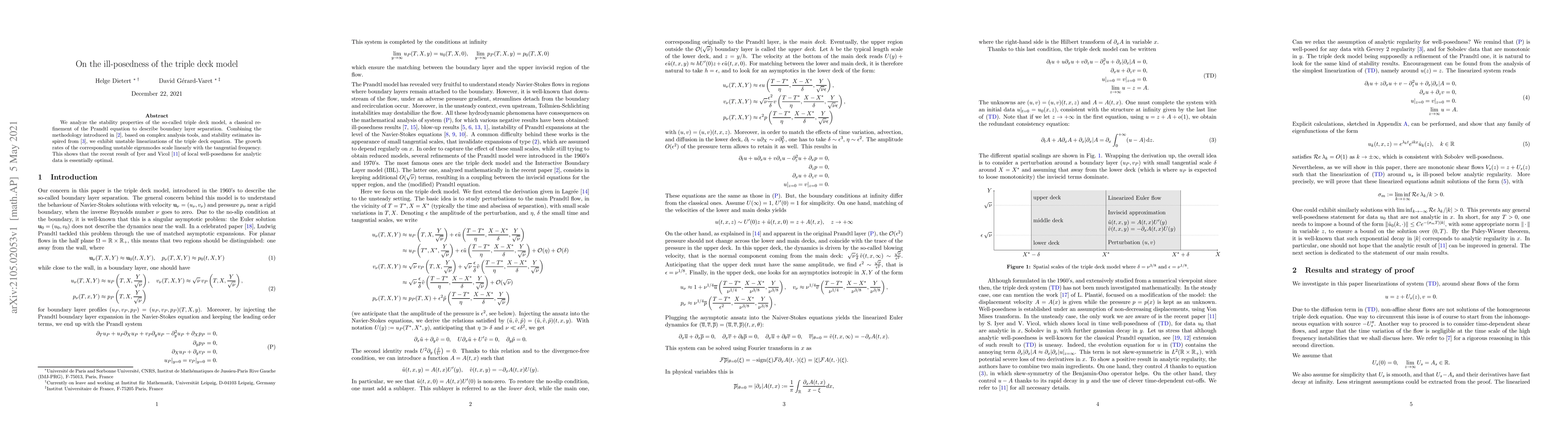 The triple deck model, used to describe boundary layer separation, is found to have unstable linearizations with growth rates scaling linearly with tangential frequency, undermining recent results on local well-posedness.
