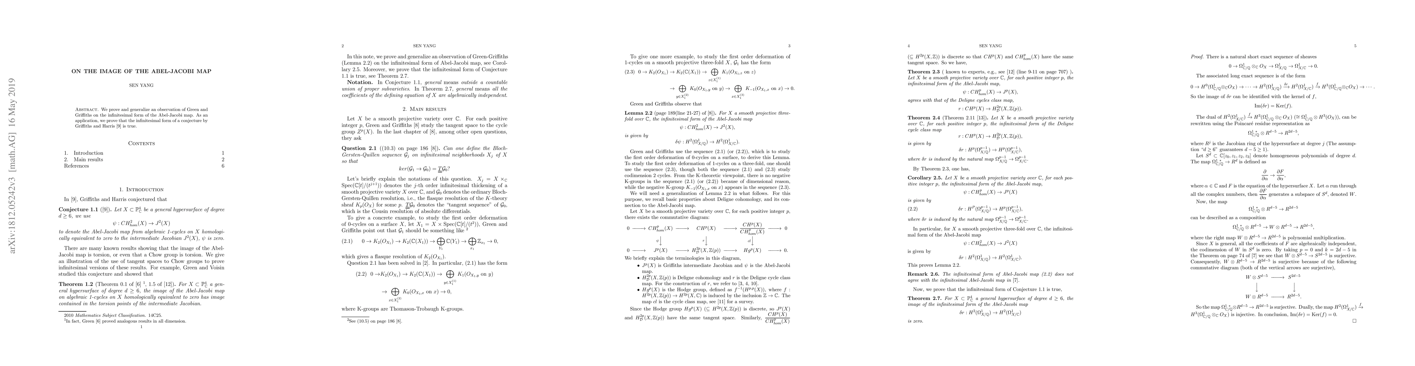 We prove and generalize an observation of Green and Griffiths on the infinitesimal form of the Abel-Jacobi map. As an application, we prove that the infinitesimal form of a conjecture by Griffiths and Harris is true.