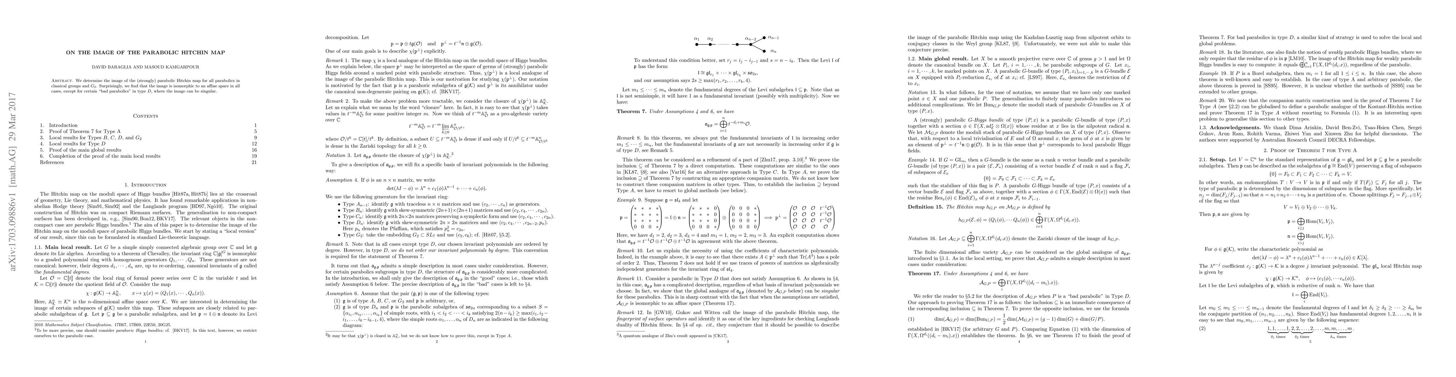 The research determines the image of the parabolic Hitchin map for classical groups and $G_2$, revealing that it is isomorphic to an affine space in most cases, with exceptions for specific "bad parabolics" in type $D$ where the image may be singular.