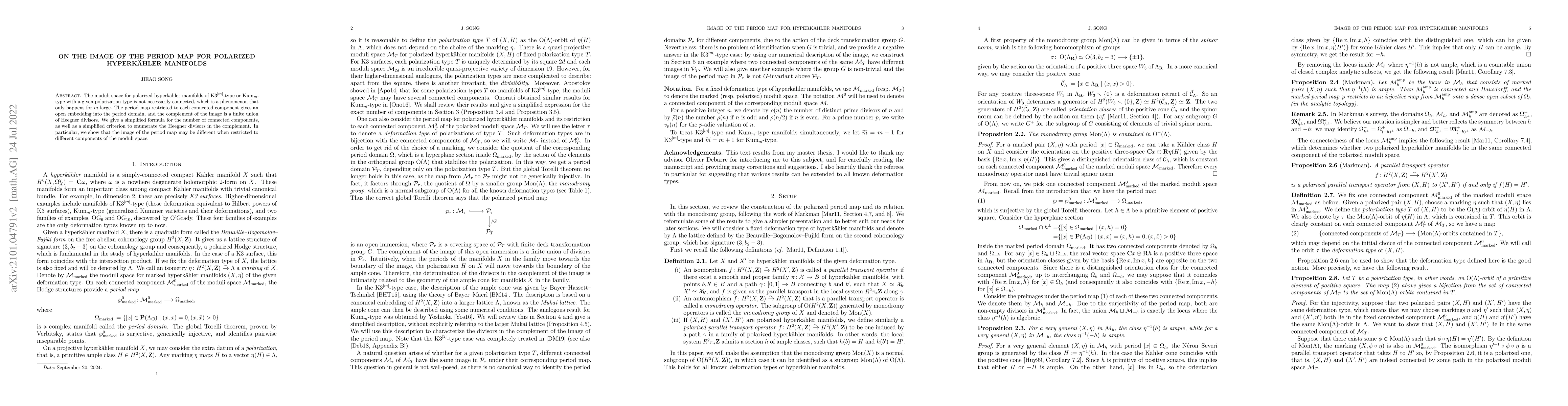 This paper studies the moduli space of polarized hyperkähler manifolds of K3 and Kum type, revealing that it can have multiple connected components for large $m$. It provides a simplified formula for the number of these components and a criterion for enumerating Heegner divisors, showing that the period map's image can differ between components.