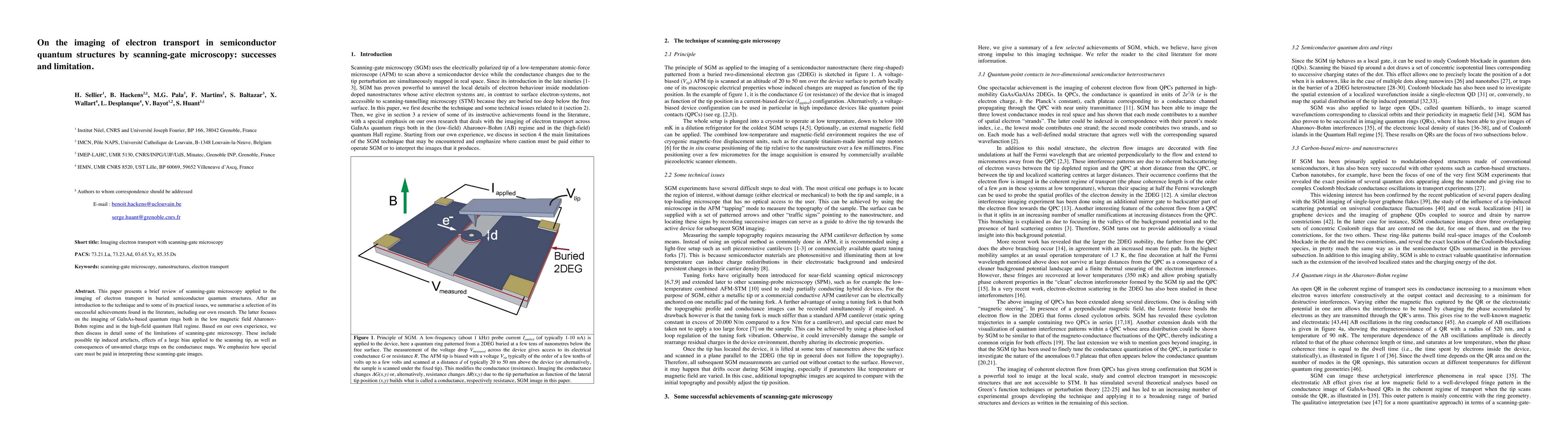 This paper reviews scanning-gate microscopy for imaging electron transport in semiconductor quantum structures, highlighting its successes in visualizing GaInAs-based quantum rings, while also detailing its limitations, such as tip-induced artifacts and charge trap effects.