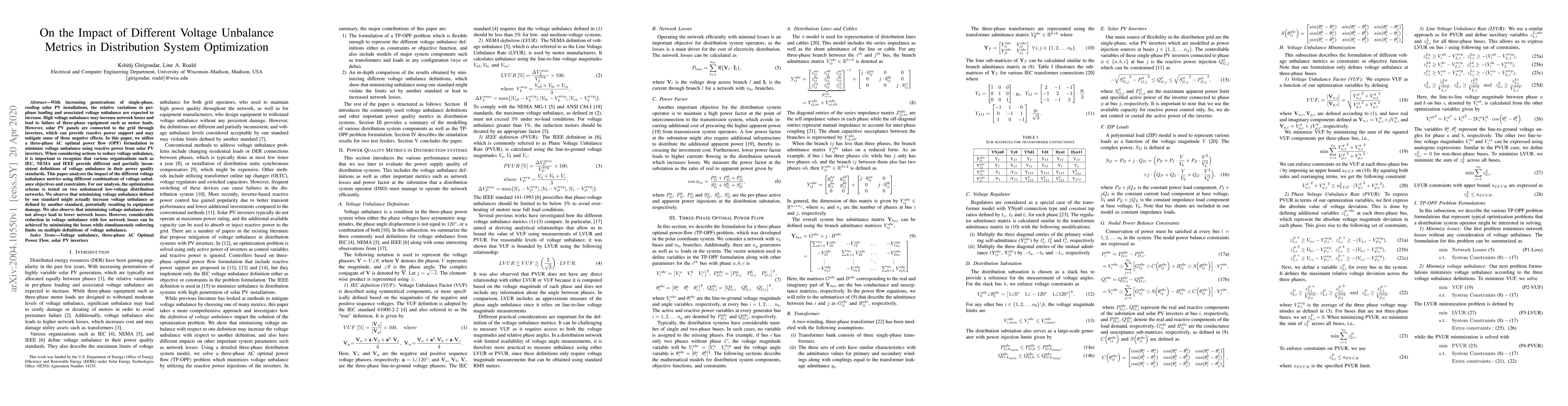 This paper investigates the impact of various voltage unbalance metrics on distribution system optimization, particularly in the context of increasing solar PV installations. It finds that minimizing voltage unbalance according to one standard may increase unbalance according to another, potentially causing equipment damage, and that simultaneous reduction of voltage unbalance and network losses is achievable through multi-objective optimization.