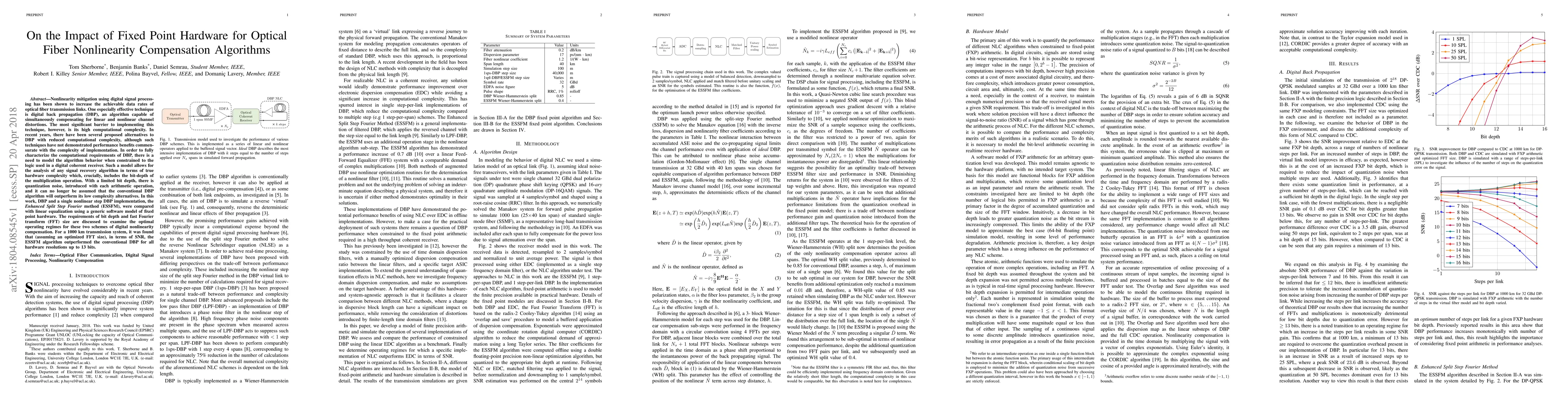 A new study compares digital signal processing techniques for optical fiber nonlinearity compensation, finding that a low-complexity algorithm performs better than traditional methods with hardware resolutions up to 13 bits.
