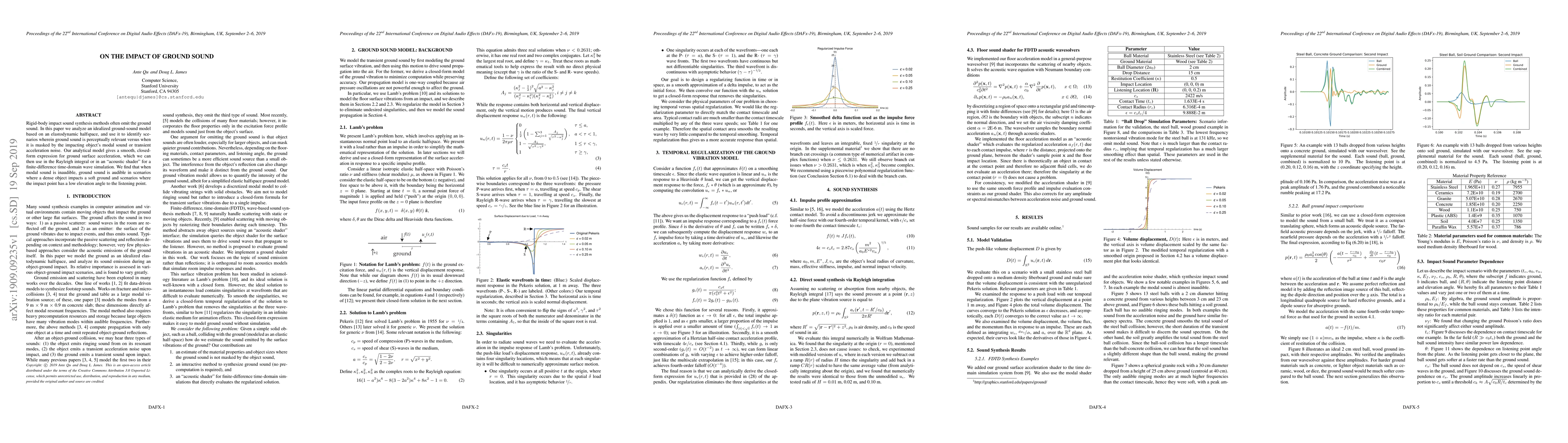 This paper develops an idealized model for ground sound during rigid-body impacts, identifying conditions where ground sound is perceptually relevant. It finds that ground sound is audible when modal sound is inaudible, particularly in impacts involving dense objects on soft ground or low elevation angles.