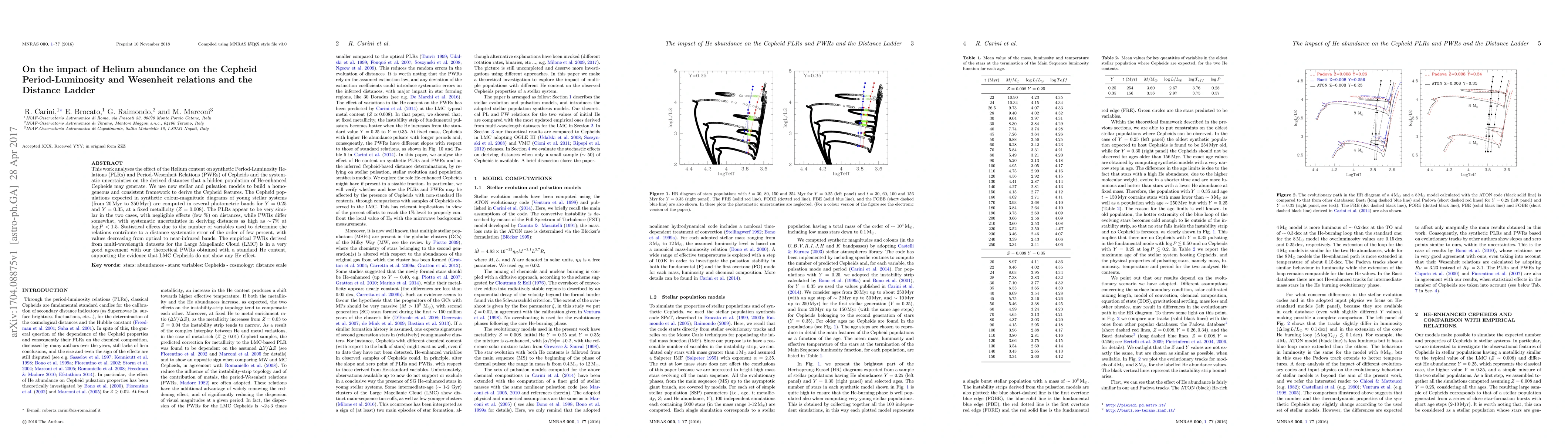 This paper investigates the impact of Helium abundance on Cepheid Period-Luminosity and Period-Wesenheit relations, finding negligible effects on PLRs but up to 7% systematic uncertainties in PWRs for He-enhanced Cepheids, with empirical PWRs for the LMC aligning well with theoretical models.