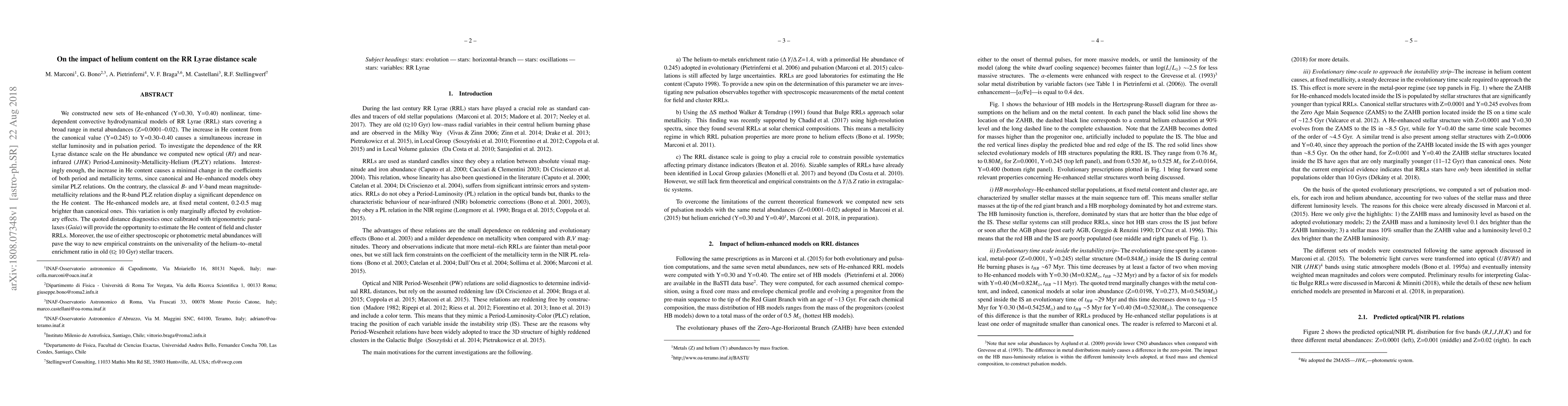 We constructed new sets of He-enhanced (Y = 0.30, Y = 0.40) nonlinear, time-dependent convective hydrodynamical models of RR Lyrae (RRL) stars covering a broad range in metal abundances (Z from 0.0001 to 0.02). The increase in He content from the canonical value (Y = 0.245) to Y = 0.30 and 0.40 causes a simultaneous increase in stellar luminosity and in pulsation period. To investigate the dependence of the RRL distance scale on the He abundance, we computed new optical (RI) and near-infrared (JHK ) period luminosity metallicity helium relations. Interestingly enough, the increase in He content causes a minimal change in the coefficients of both period and metallicity terms, since canonical and He-enhanced models obey similar PLZ relations. On the contrary, the classical B and V band mean magnitude metallicity relations and the R band PLZ relation display a significant dependence on the He content. The He enhanced models are, at fixed metal content, 0.2 to 0.5 mag brighter than canonical ones. This variation is only marginally affected by evolutionary effects. The quoted distance diagnostics once calibrated with trigonometric parallaxes (Gaia) will provide the opportunity to estimate the He content of field and cluster RRLs. Moreover, the use of either spectroscopic or photometric metal abundances will pave the way to new empirical constraints on the universality of the helium to metal enrichment ratio in old stellar tracers.