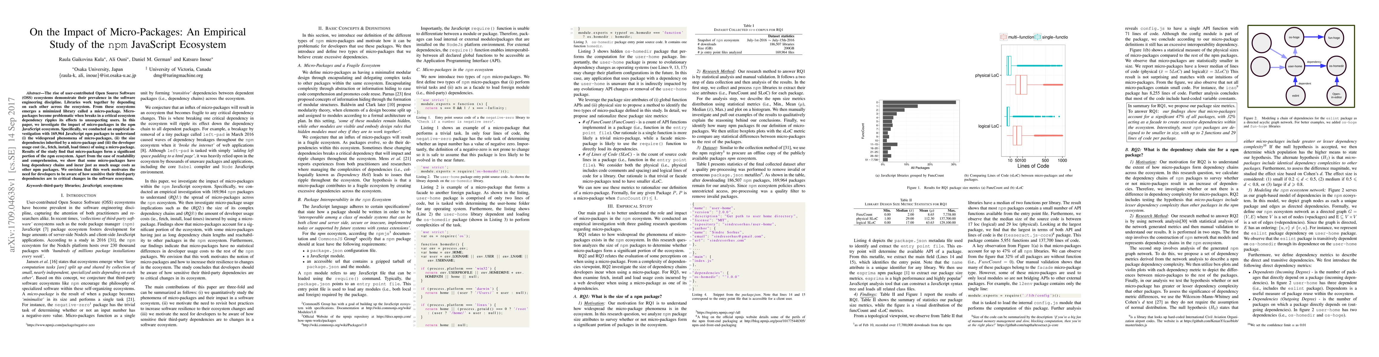 This paper investigates the prevalence and impact of micro-packages in the npm JavaScript ecosystem, finding they constitute a significant portion and can have long dependency chains, leading to comparable usage costs. The study highlights the importance for developers to consider the sensitivity of their dependencies.
