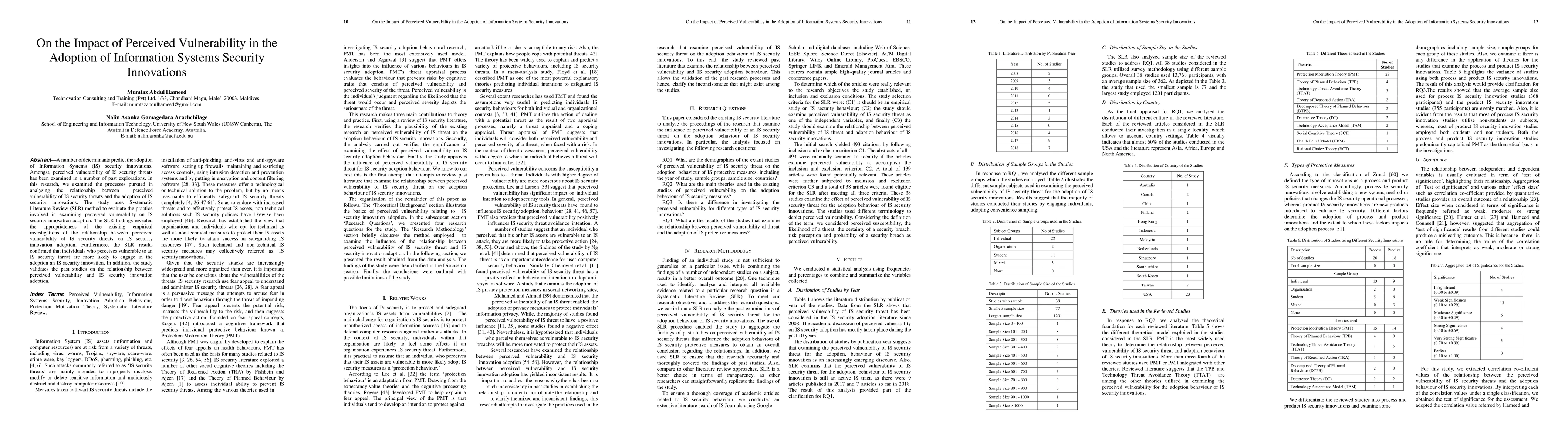 This research explores the relationship between perceived vulnerability to IS security threats and the adoption of IS security innovations, using Systematic Literature Review (SLR) to validate existing empirical studies. The findings confirm that individuals who perceive higher vulnerability are more likely to adopt IS security innovations.