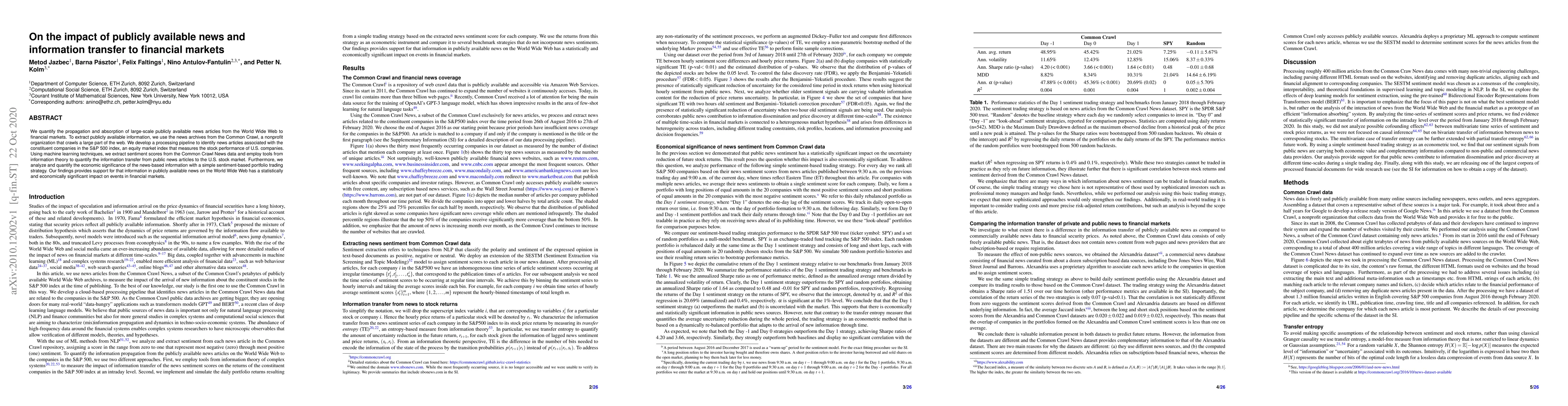 This paper analyzes the influence of publicly available news from the World Wide Web on financial markets using sentiment scores extracted from Common Crawl News data. It finds that such news has a statistically and economically significant impact on stock market performance, as demonstrated through a sentiment-based portfolio trading strategy.