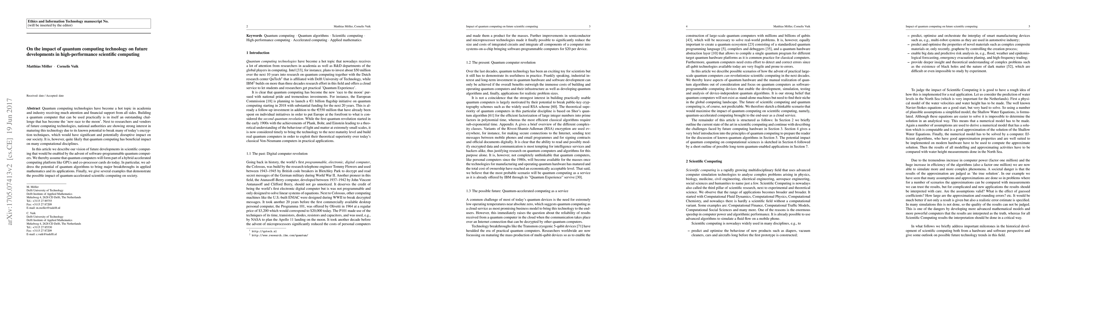 This paper explores the potential of quantum computing to revolutionize high-performance scientific computing, envisioning its integration into hybrid computing platforms alongside GPUs. It highlights the transformative impact of quantum algorithms on applied mathematics and society, emphasizing the technology's promise to break current encryption methods and drive significant advancements in computational disciplines.